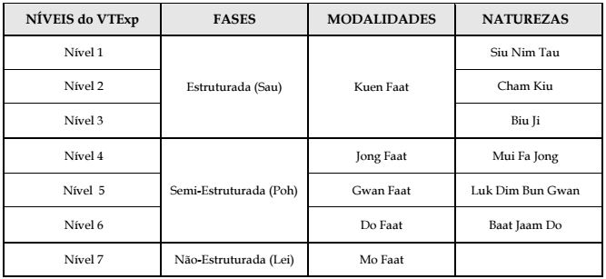 O Ving Tsun Experience é um programa inspirado na visão de futuro compartilhada acima pelo Patriarca Moy Yat (9GVT) que proporciona a experiência de um sistema de inteligência marcial com características do Sistema Ving Tsun, em termos de fases, modalidades e naturezas do domínio. A tabela abaixo apresenta esta estrutura: